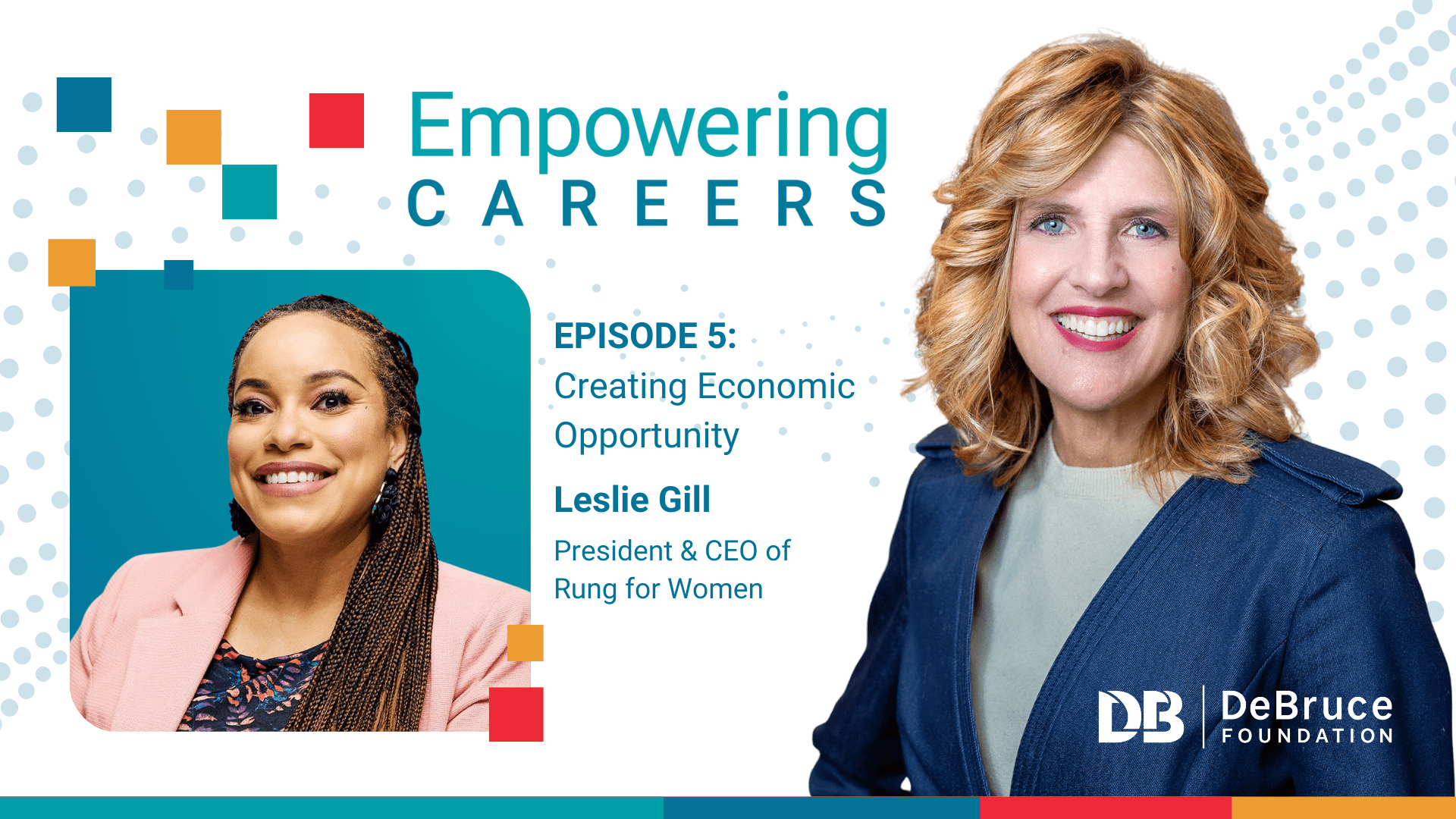 Dr. Leigh Anne Taylor Knight: Welcome to the DeBruce Foundation’s Empowering Careers podcast, where we explore insights and strategies for building empowered careers. Today, we are thrilled to welcome Leslie Gill. Leslie is the President and CEO of Rung for Women, a nonprofit located in St. Louis, where they are committed to training and coaching and support services for women as they move through their careers. Since joining Rung for Women in 2017, Leslie and her team have touched hundreds of lives of women advancing their opportunities economically, professionally, and personally. I’m so happy to have Leslie with us. She has been recognized as a leader in equity and in economic mobility for many, many years now. And it’s just such a pleasure to have you on the podcast today, Leslie. So welcome.